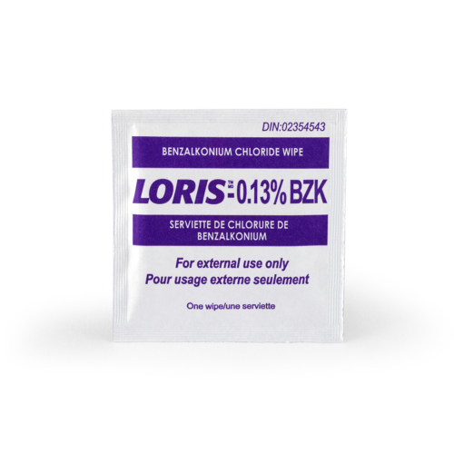 LORIS™ 0.13% BZK Wipes offer a gentle yet effective solution for cleansing wounds and sensitive skin areas. Formulated without alcohol, they prevent the stinging sensation often associated with wound care, making them ideal for first aid kits, clean catch urine samples, and general wound cleansing. These wipes are anti-microbial, latex-free, and lint-free, ensuring safe use without irritation. Each wipe is individually wrapped for single-use convenience and dries quickly on the skin. Containing 0.13% Benzalkonium Chloride (BZK) as the active ingredient, these wipes support infection control in both personal and institutional settings.