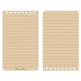 The 3" x 5" top-spiral notebook is small enough to fit comfortably in your pocket and tough enough to survive any of Mother nature's onslaughts. This scrappy pocket notepad will survive rain, sweat, mud, snow, oil, and grease. The tan paper is legible in bright sunlight. Impact-resistant Wire-O binding won't lose its shape when tossed around in packs or put in a back pocket. The polydura cover defends your field notes from scratches and stains. Each notepad is printed with a standard and metric ruler on the back cover.